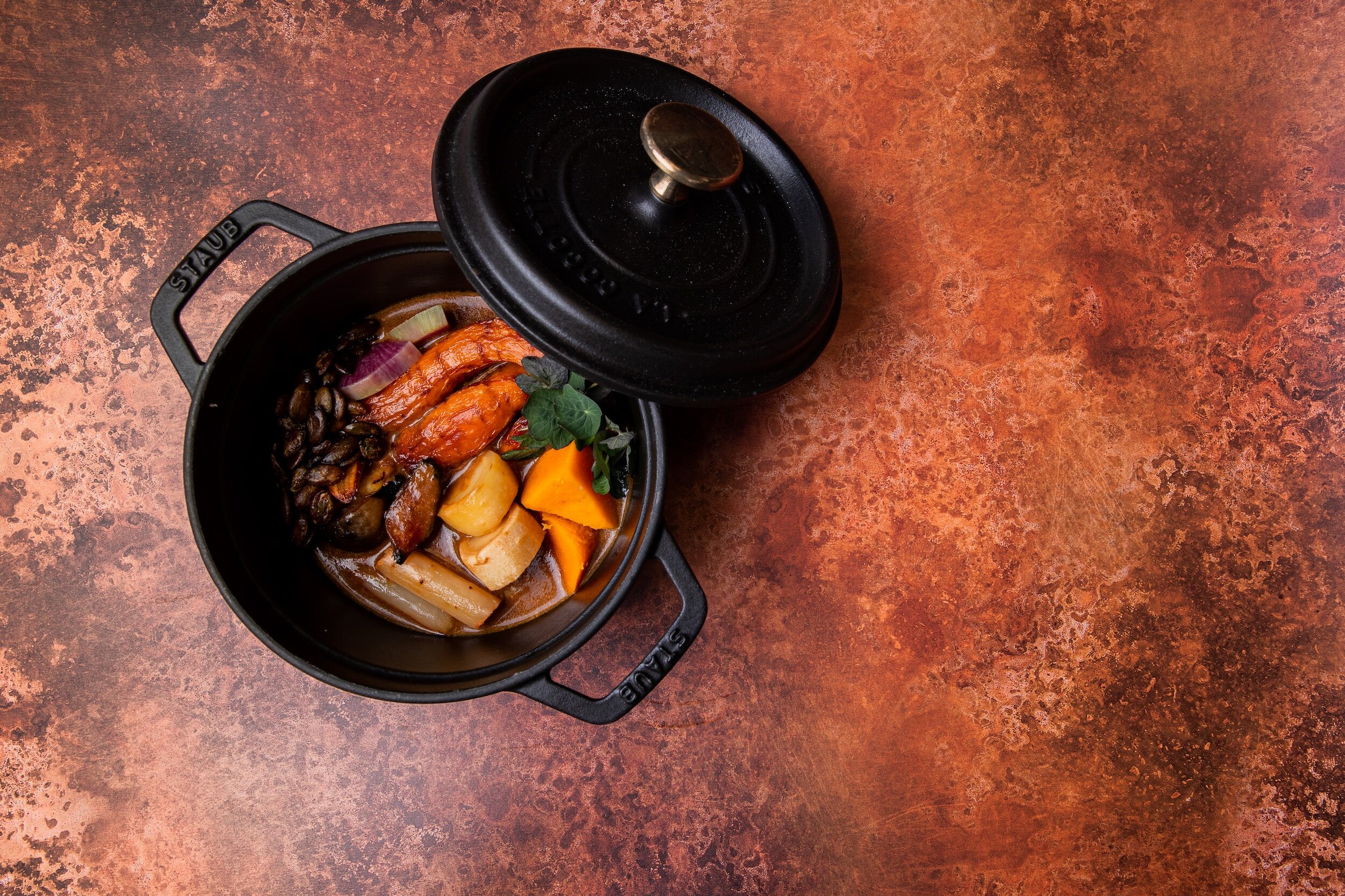 Onion Petals, Mushroom Ketchup, Cabernet Sauvignon Sauce (2, 12, 7)